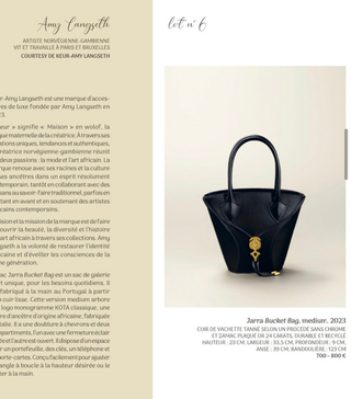 In June 2023, I had the immense honour of being invited by Christie's Paris, one of the world's largest auction houses, to participate in their AOA exhibition. I had the privilege of showcasing my Jarra bag collection, which features the classic KOTA monogram logo and an African ancestor statue, meticulously crafted in Italy, with the bags themselves made in Portugal. I am deeply humbled and grateful for this prestigious opportunity.