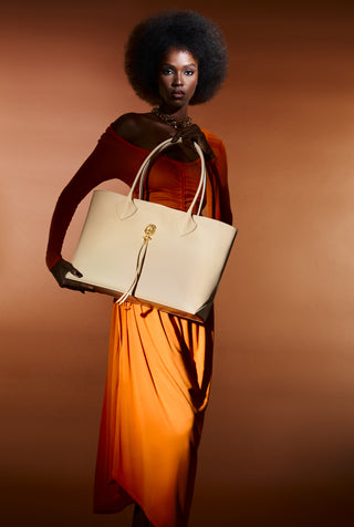Creative Director: Andréa Veka for The Styling Office • Styling by Andréa Veka, Chanel Tremiseau and Amy Langseth • Model Photographer: Olivier Desarte • Assistant Photographer: Louis Kerckhof • Bags' Photographer: Hughes Dubois • Studio Assistance: Thomas Lancz • Videographer: Gleb Bondarenko • Make-up: Drucila Beauty Studio • Hair: Hélène Salumu for Uzi Hair Bar • Model: Leila Nda • Model Agency: Run Model Management