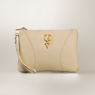 A unique art gallery clutch, timeless with smooth leather and chevron lining. It's handcrafted in Portugal with the embellished classic KOTA monogram logo at the front, an African ancestor statue which is made in Italy. It’s beautiful alone for the evening or daytime and also can be placed in your Jarra cabas. Wear yours around your wrist using the detachable strap.